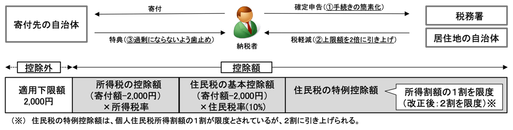 (所得税及び住民税の寄付金控除額の合計額のうち、2/5を道府県民税、3/5を市町村民税からそれぞれ控除される)。