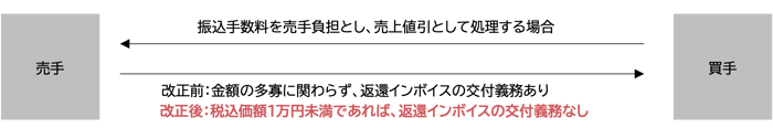実務上、振込手数料を売手負担とする場合、売手側で売上値引とする処理と支払手数料(課税仕入れ)とする処理の2つの方法があるが、今年度の改正により売上値引として処理することで、事務負担は軽減される。