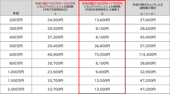 その結果、2026(令和8)年・2027(令和9)年における給与所得者の課税最低限は「178万円」まで引き上げられ、また、中所得者の基礎控除も低所得者並みに引き上げられる等、足元の物価高に配慮した措置が講じられる。