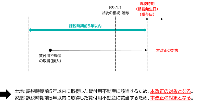 【適用対象例①】課税時期前5年以内に貸付用不動産(土地及び家屋)を対価を払って取得した場合